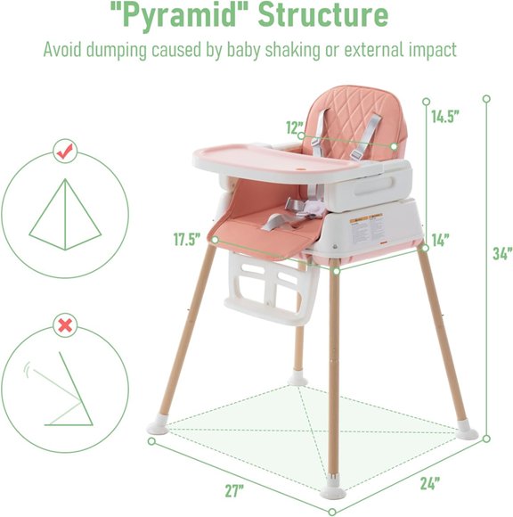 Soobaby 3-in-1 convertible high chair - 34'' x 27'' x 24'' - pink