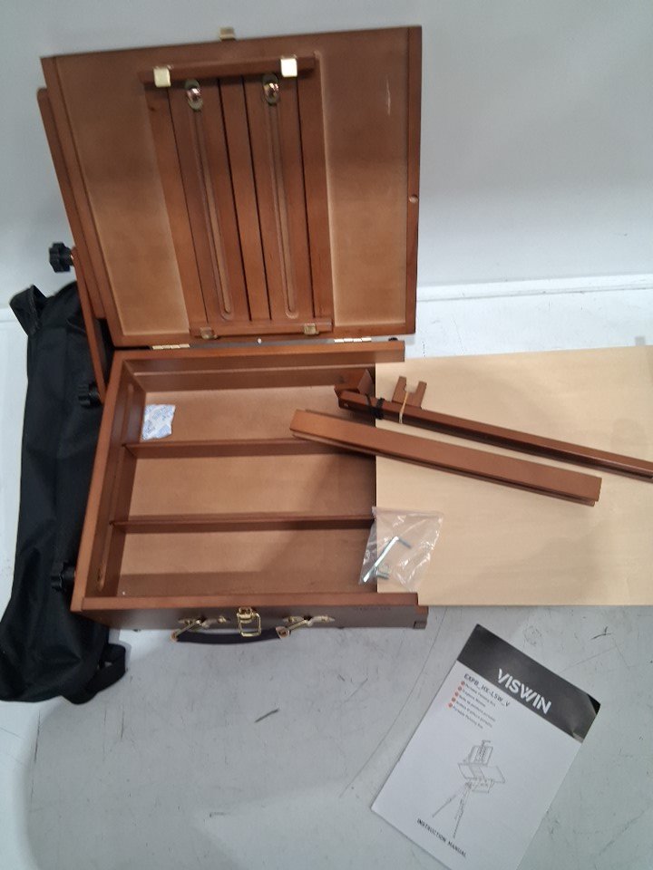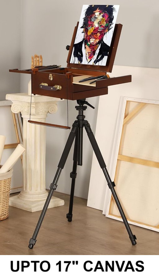 VISWIN Portable Plein air Easel painting box with adjustable tripod stand - Upto 17" Canvas - black/brown - (model: expb_hx-l5w_v)
