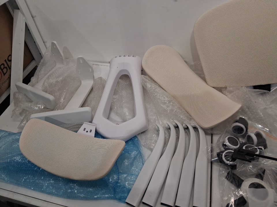 office chair hardware is loose and back piece has scuff marks and scratches in it