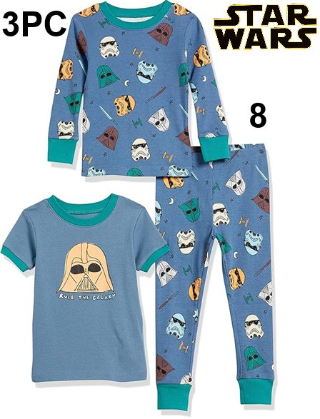 3PC KID'S AMAZON ESSENTIALS Fitted Cotton Pyjama Set - SIZE 8 - BLUE/TEAL