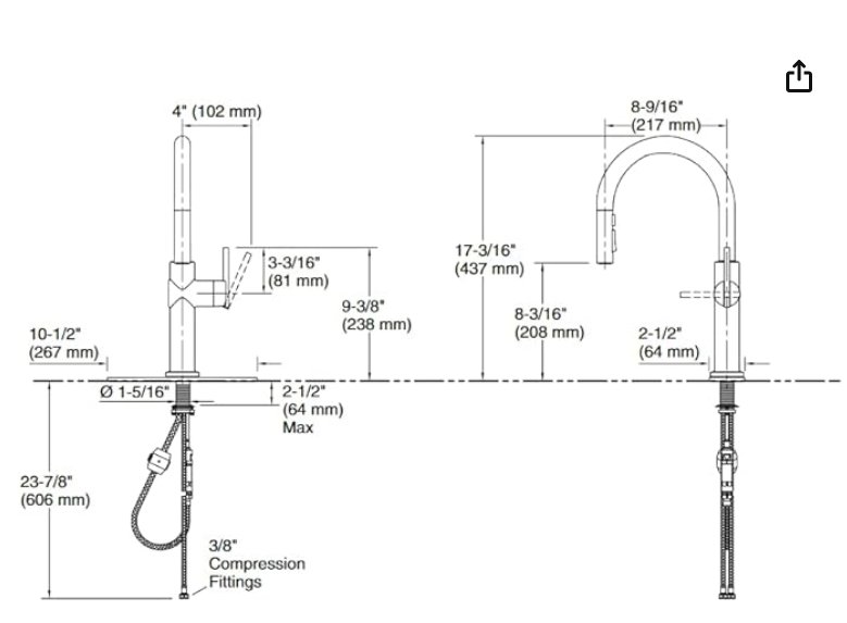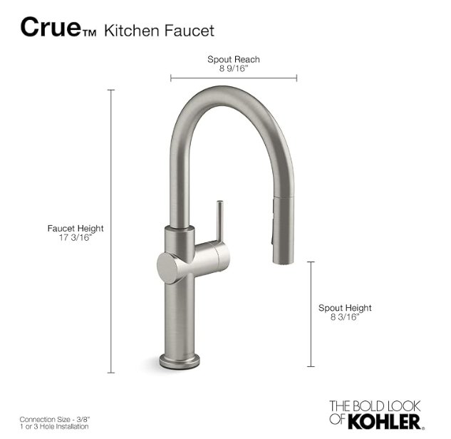 kohler crue kitchen sink faucet- 17"x 8"- gold (model: K-22972-2MB)