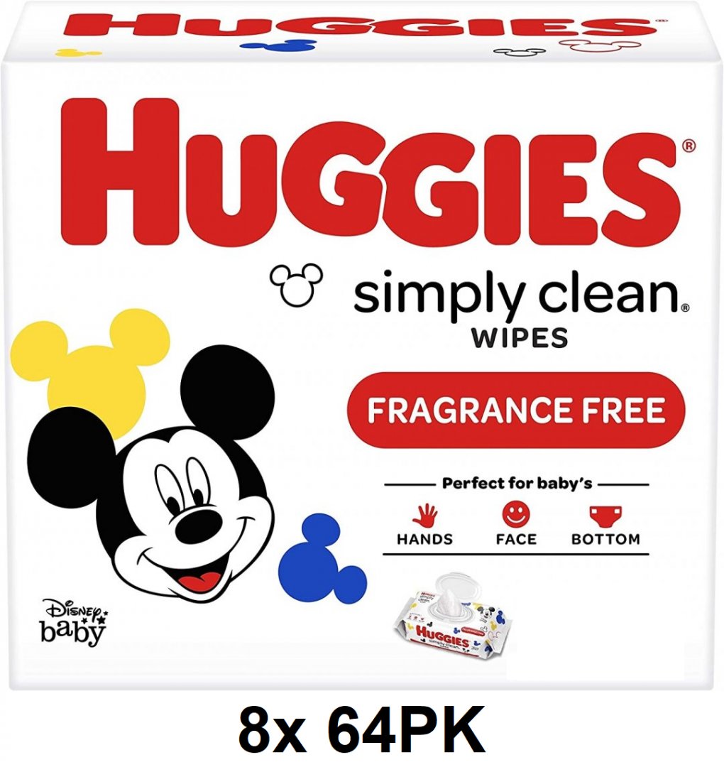 8 (64PK) HUGGIES SIMPLY CLEAN BABY WIPES, DISNEY BABY EDITION - 512 total