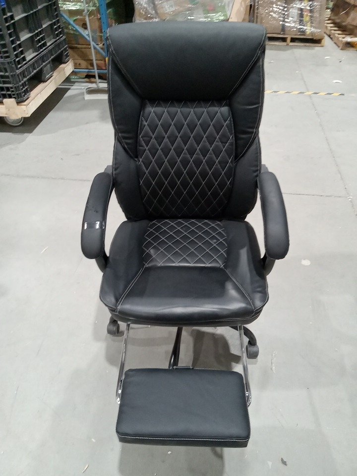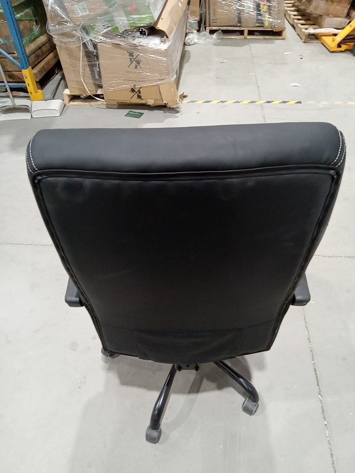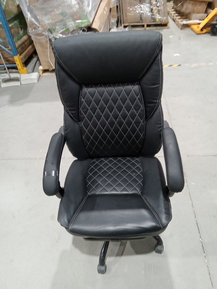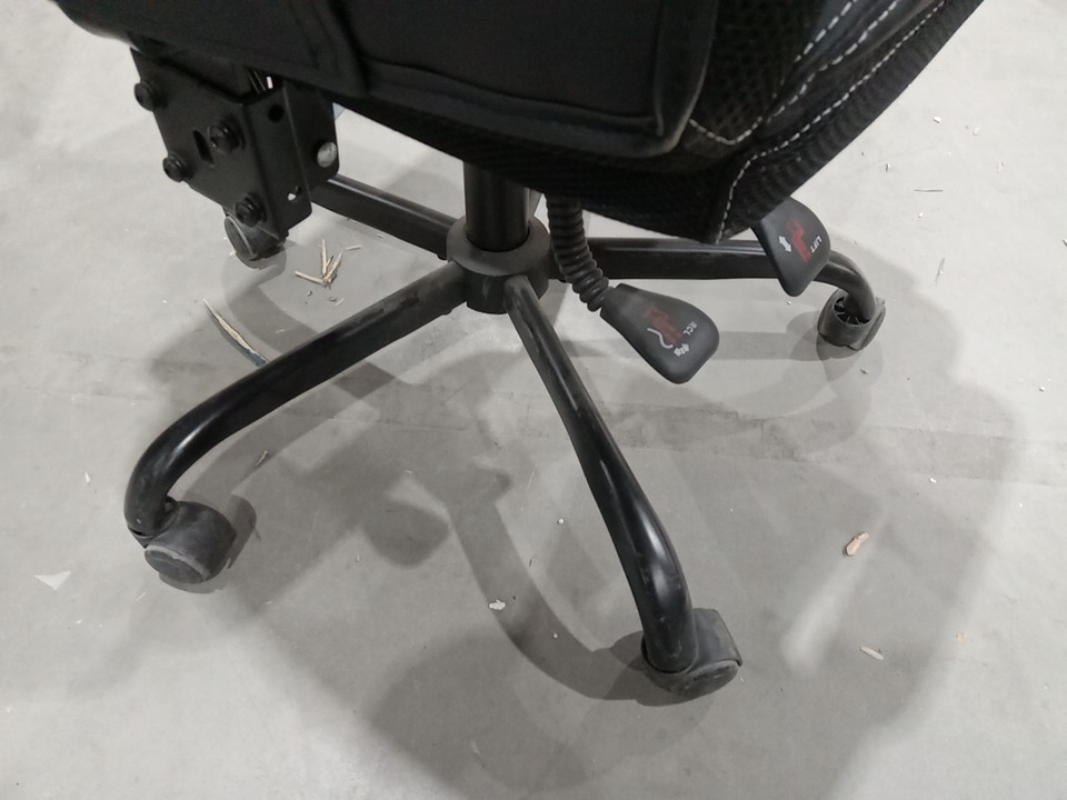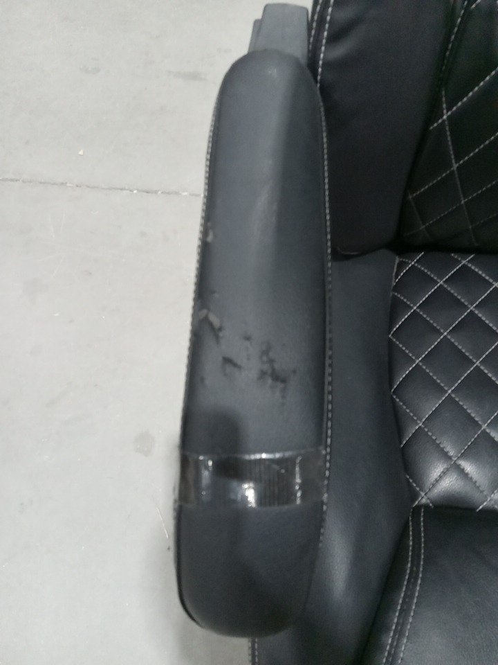 their are tears on the material of this chair as well as some duct tape which is likely covering a large cut / tear on the armrest, this is due to previous use, this item is also previously assembled as it arrived to our facility completely assembled. see photos below