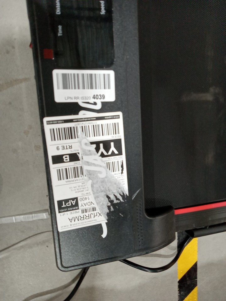 Item appears dirty due to loose shipping/storage, there are some stickers/return labels present (can be easily taken off). It is also missing the magnet safety key, tablet holding tray, remote control and assembly hardware/accessories. However we tested the item for power and function with our safety key and it works fine.