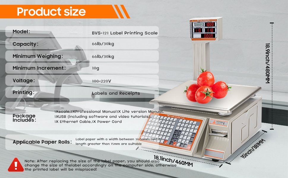 bingox Commercial Digital Scale with Label Printer - 66lb capacity - grey (model: bvs-121