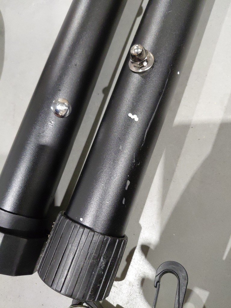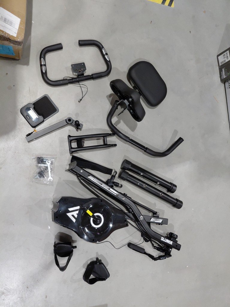 Some scratches on unit from shipping, handle bar foam is slightly ripped from shipping, doesn't appear to have been assembled. Some generic hardware may be needed for completion (see photos)