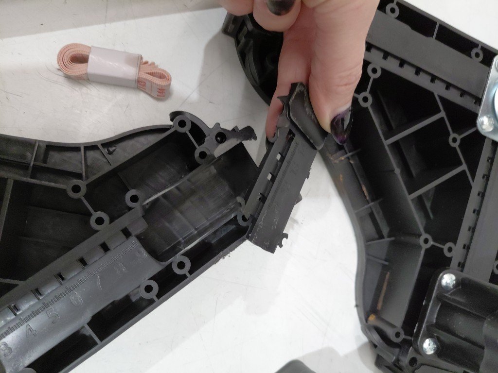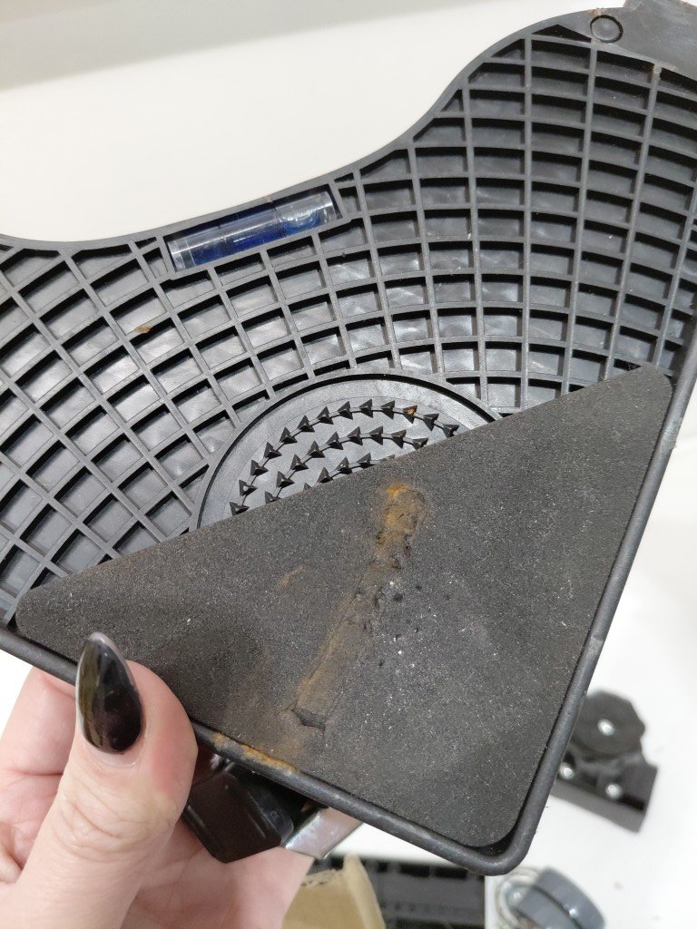 One is slightly broken on the base, may be able to be fixed. Some markings on the foam from previous use (see photos)
