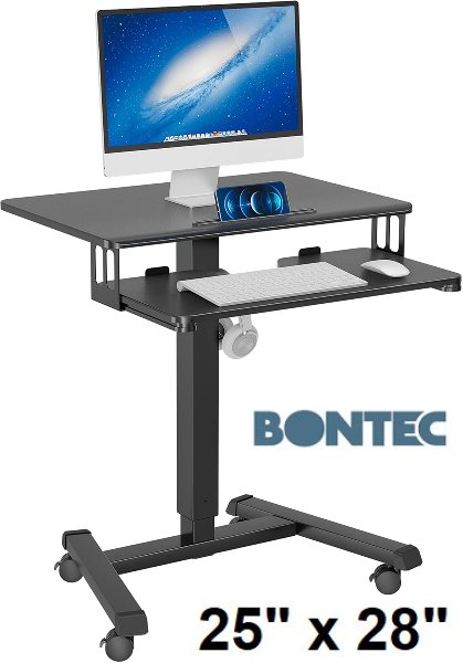 BONTEC Mobile Standing Desk with Keyboard Tray - 25" x 28" - black (model: mws04-bk)