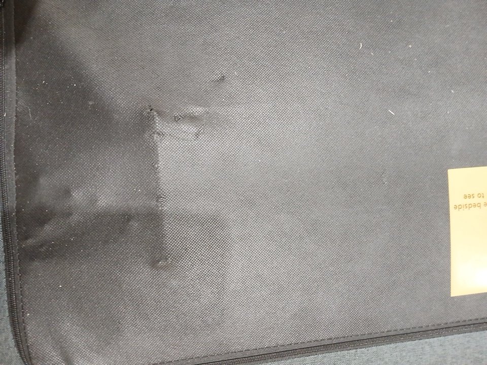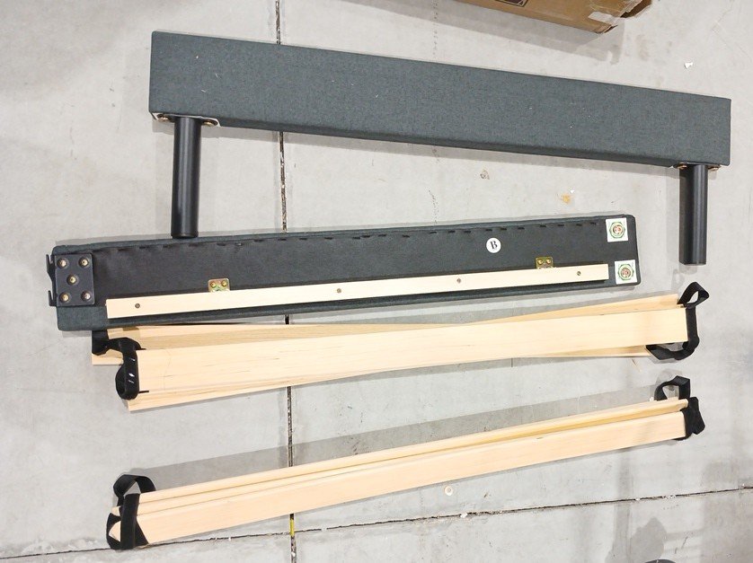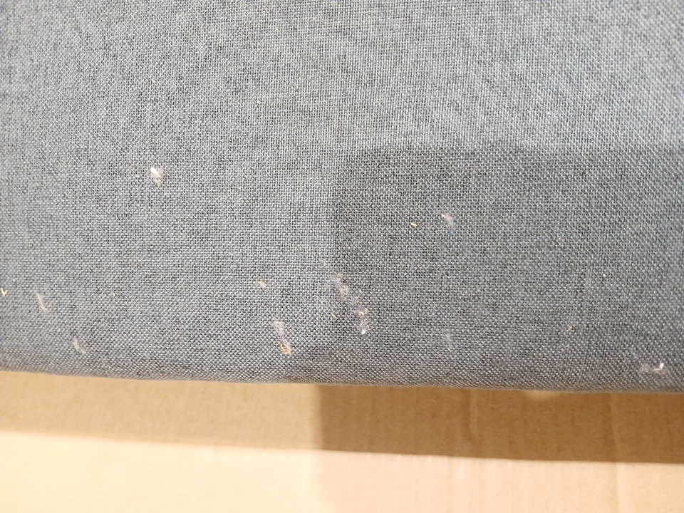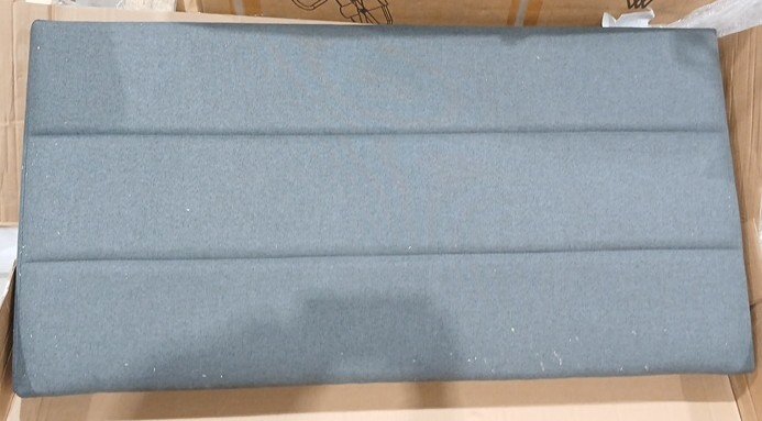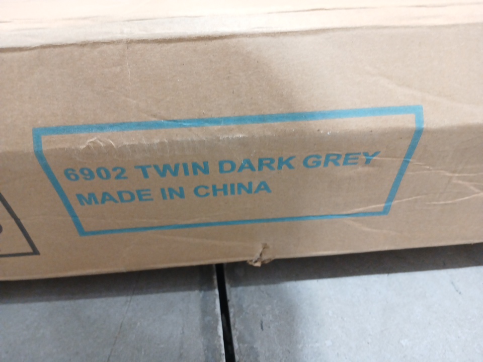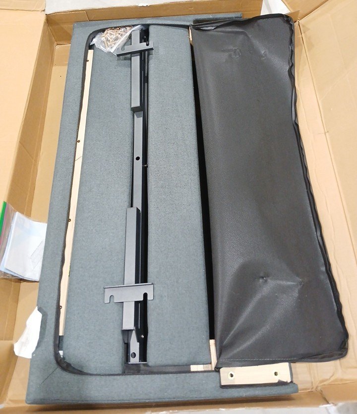 Our item is a darker shade of grey. The back of the head has some holes and the front has scratches and stains. Additional hardware may be required for assembly