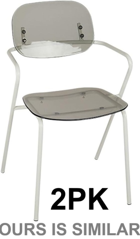 2pk Transparent plastic mid back dining chair with chrome frame - 18" x 20" x 33" - smoke