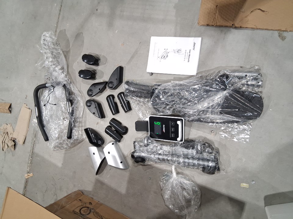 Assembly marks on various parts and loose hardware Some additional generic hardware may be needed for assembly. Tested screen for power, though there appears to be a loose screw inside the screen, we could not get it out