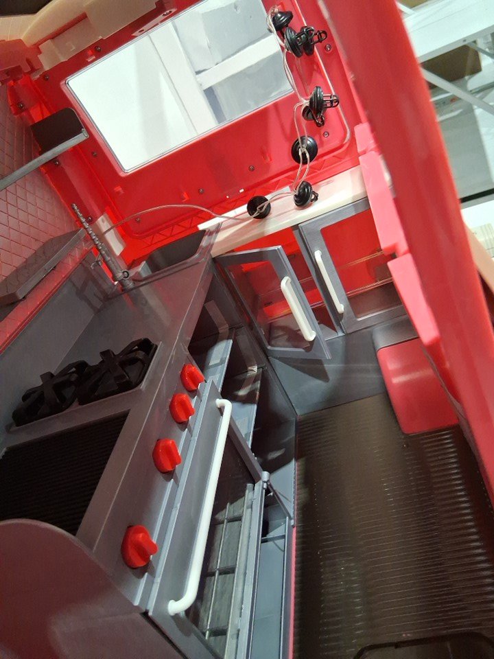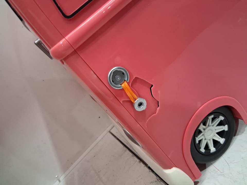 item is missing the door and has a small crack in the back of the item, lights are not working, this indicates prior use