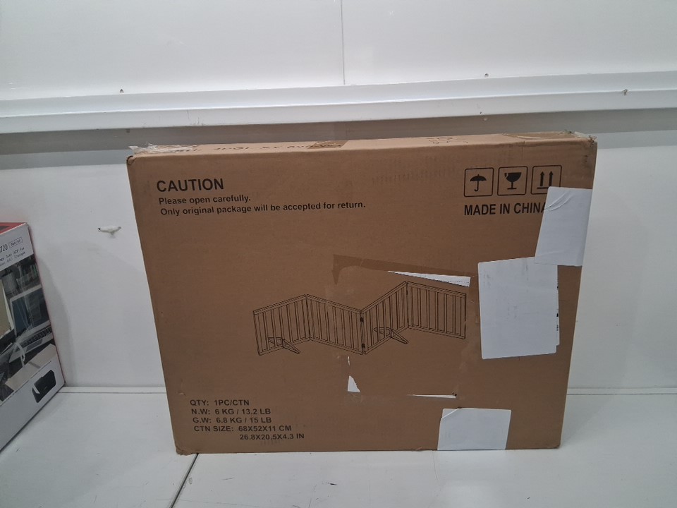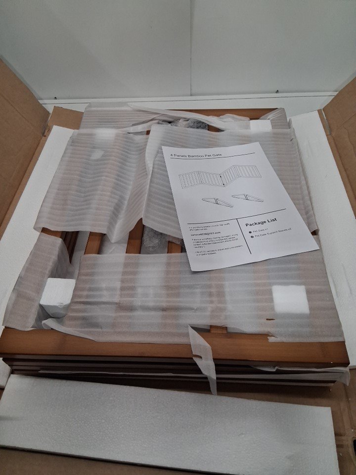 smuxee Bamboo Freestanding foldable Pet Gate with support feet - 74" x 24" - walnut (model: 4pgl-xy-025-wt)