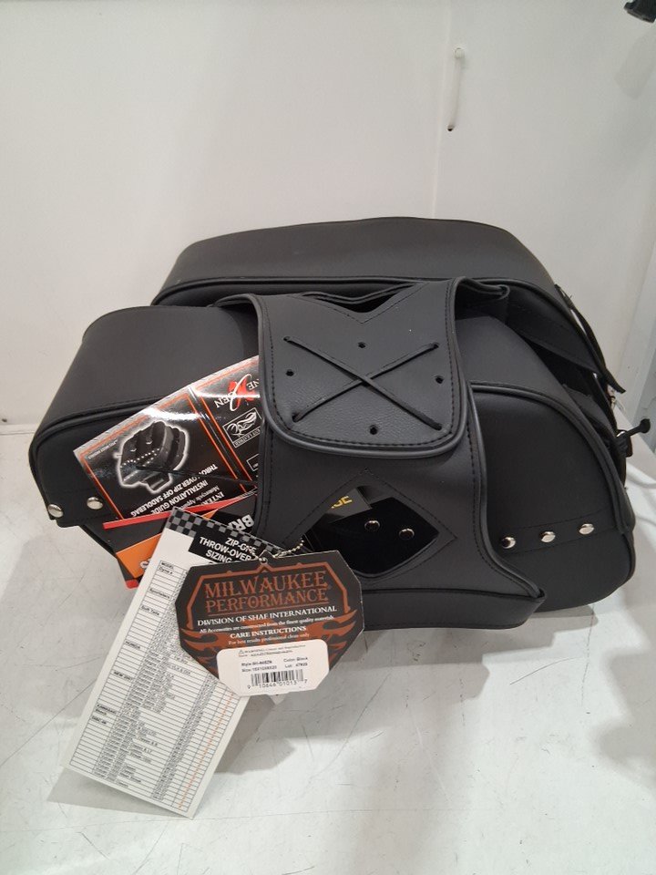 Milwaukee Leather Zip-Off PVC Studded Throw Over Motorcycle Saddlebags- black - (model:SH646ZB)