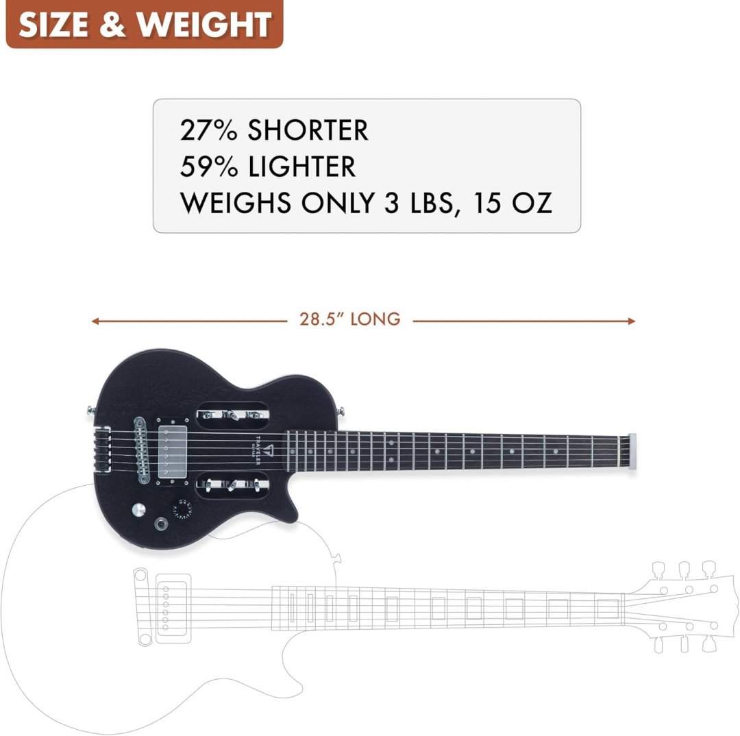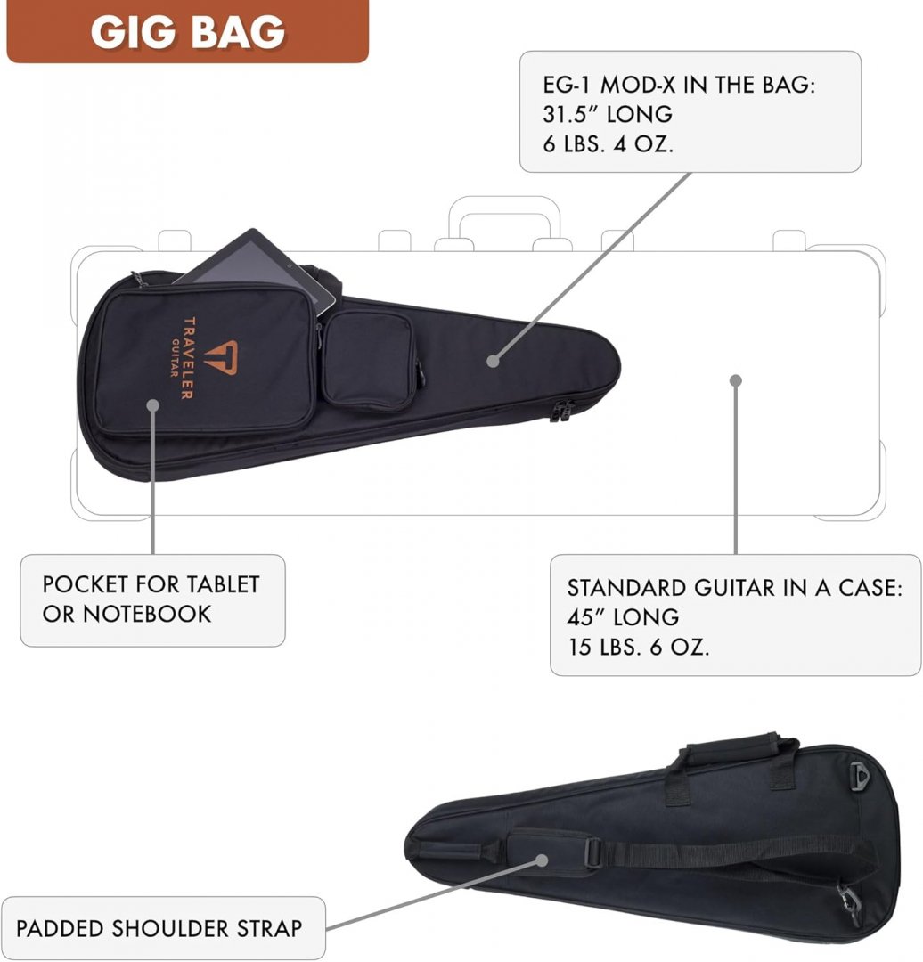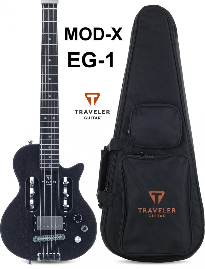 Traveler Guitar EG-1 Mod-X Electric Hybrid Travel Guitar wITH Deluxe Gig Bag- 28.5" - BLACK (MODEL: EG1X-00060)