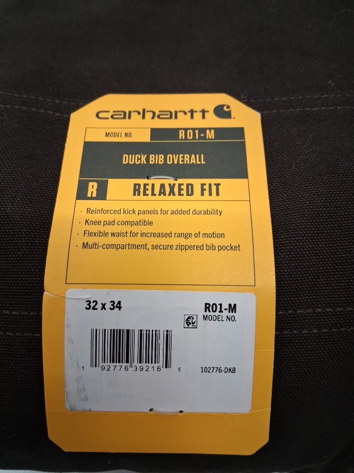 MEN'S CARHARTT RELAXED-FIT DUCK BIB OVERALLS - 32w x 34l - dark brown (STYLE: R01-M)