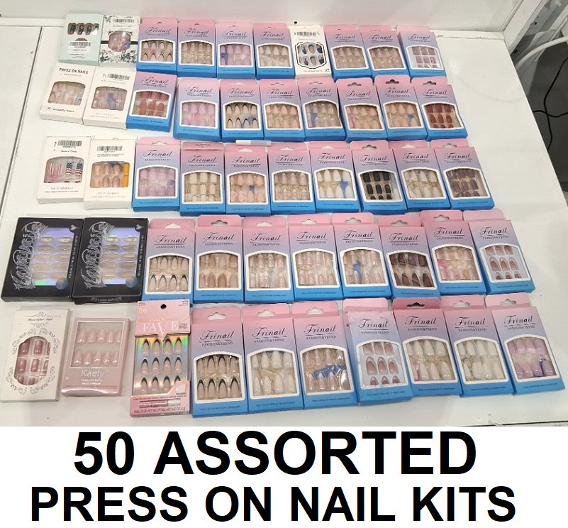 50 ASSORTED PRESS ON NAIL KITS - ASSORTED PATTERNS/SHAPES /LENGTHS