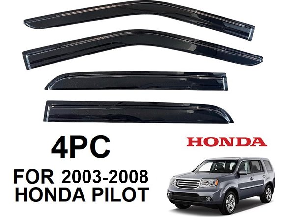 4pc KPY stick-on Window Visor rain guards - for 2003 to 2008 Honda Pilot - black (model: 811409)
