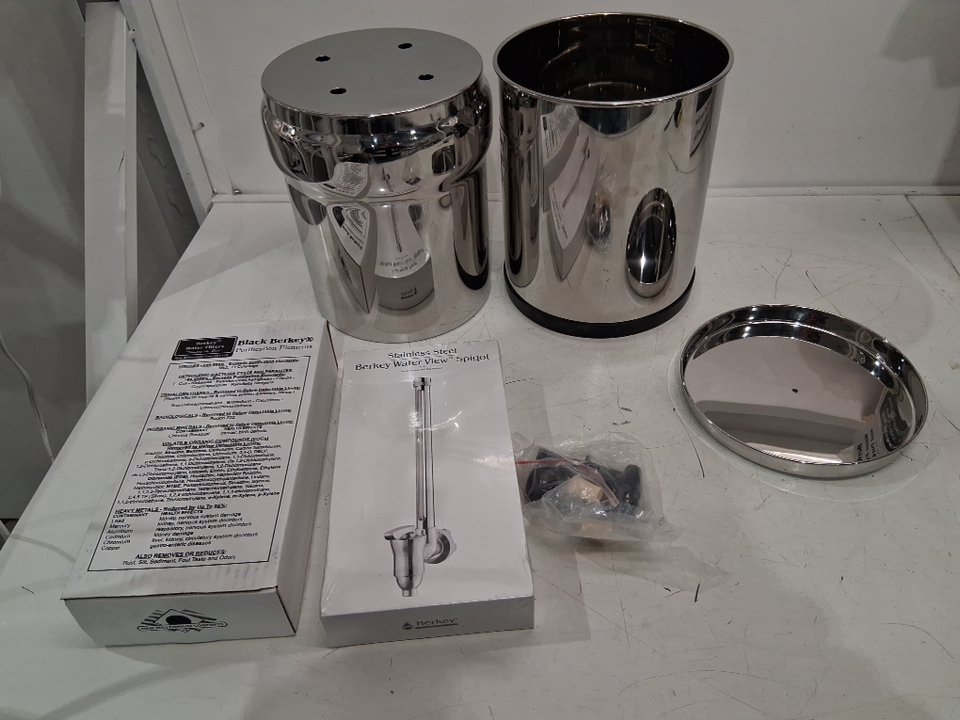 Big Berkey Gravity-Fed Water Filter System with 2 Black Berkey Elements Plus Deluxe 7'' Stainless Steel Berkey Water View Spigot, 2.25GAL CAPACITY - SILVER (MODEL: BB9-2)