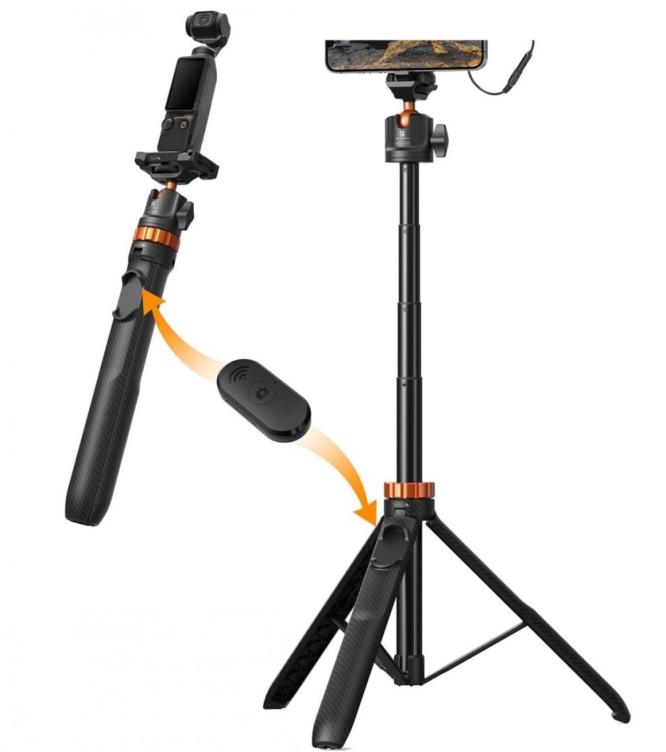 K&F CONCEPT Selfie Stick / Tripod with Detachable Remote - 62" - Black/Orange