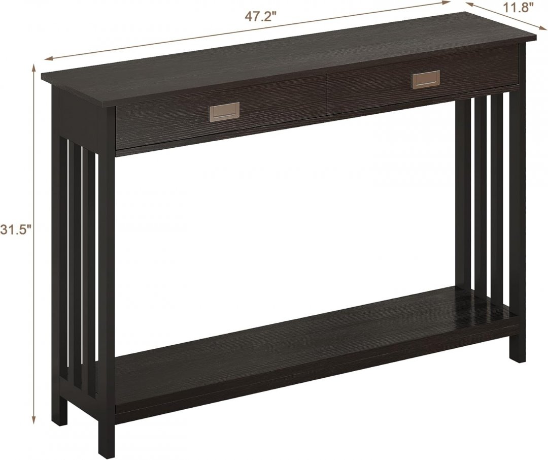 ChooChoo Mission Long Entryway Table with Drawer - 11.8" x 47.2" x 31.5" - black (model: ST2302-BK)
