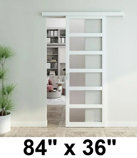 JUBEST WATERPROOF PVC SLIDING BARN DOOR WITH HARDWARE KIT - 84" X 36" - WHITE (MODEL: ojc102-6pd-w36in-hd)