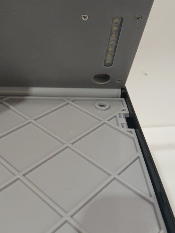 Missing a foot on a fold down part. Has a black marking on the side and minor scratches on the surface. Tested for power.