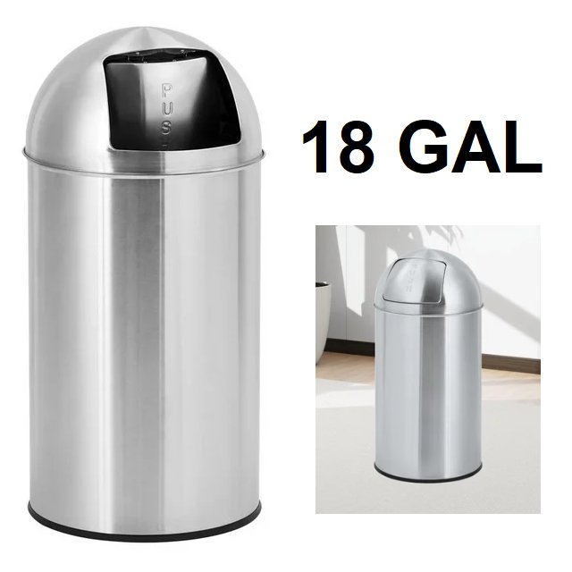 Stainless Steel Kitchen Waste Bin with Swing Lid - 18 gallon - silver