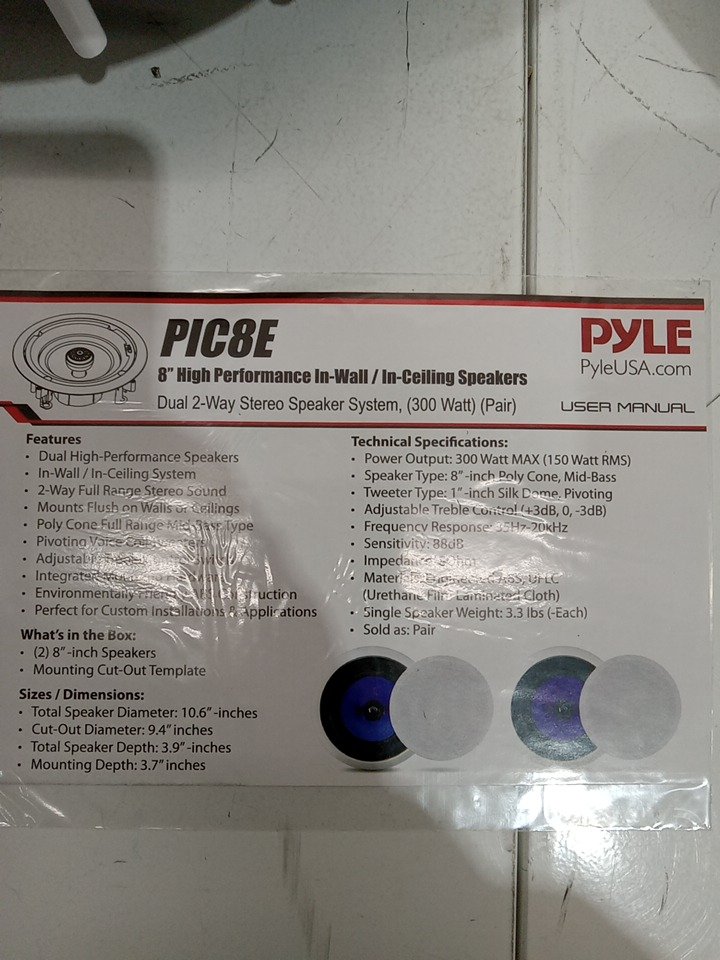 1PR PYLE-HOME HIGH-END TWO-WAY IN-CEILING SPEAKER SYSTEM WITH ADJUSTABLE TREBLE CONTROL - 300W - WHITE (M#:PIC8E)