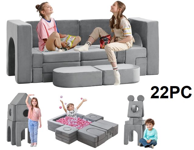 22Pcs Modular Kids Play Couch, Floor Sofa - grey