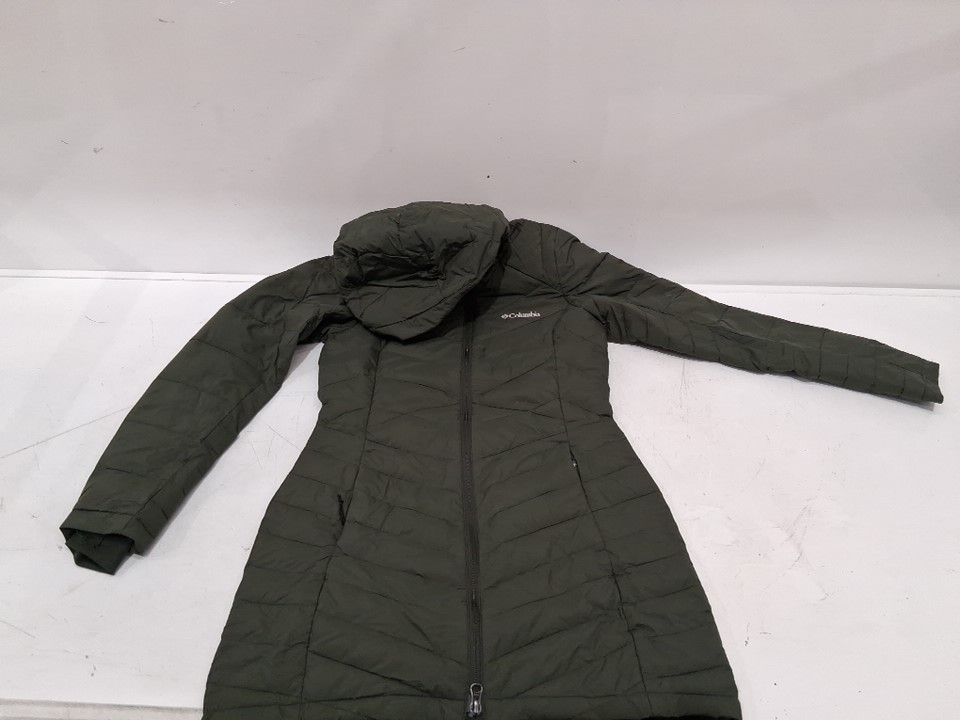 Women's COLUMBIA Joy Peak™ II Mid Hooded Jacket WITH thermal-reflective gold lining - extra small - STONE GREEN (STYLE: WK1057-397)