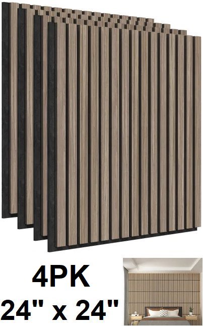 4PK Artika Sonolok sound absorbing Slatted Wall Panels with end caps - 24" x 24" - Natural (model: 24SAT-S0-0ABL)