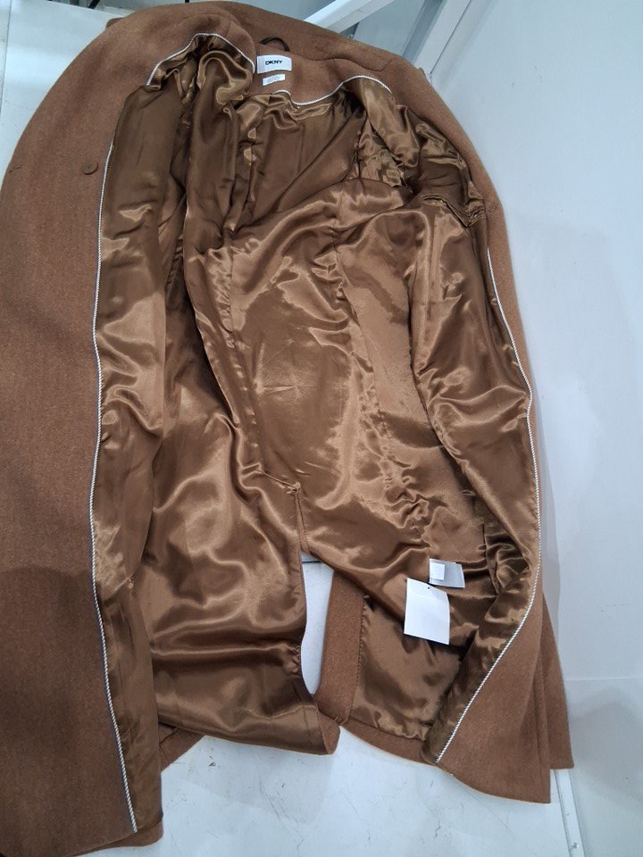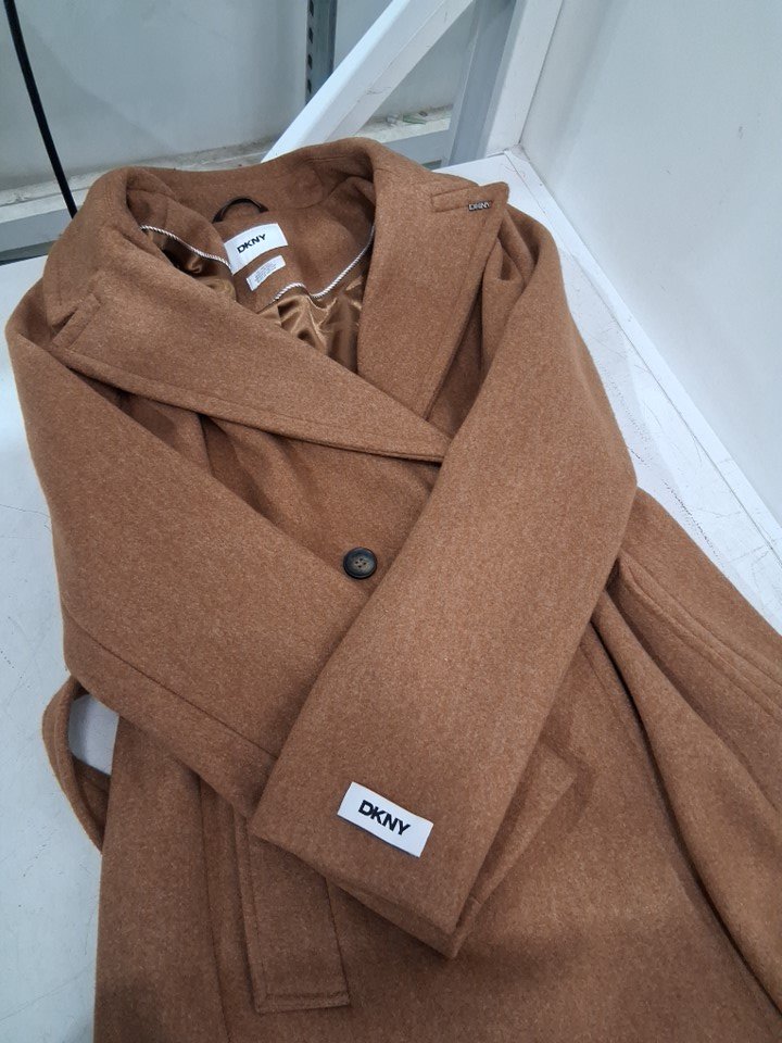 Women's DKNY Long Belted Faux-wool Transitional Jacket - Size Extra Large - Brown (Style: DL4MW190)