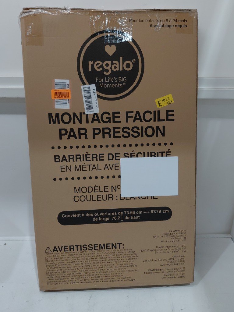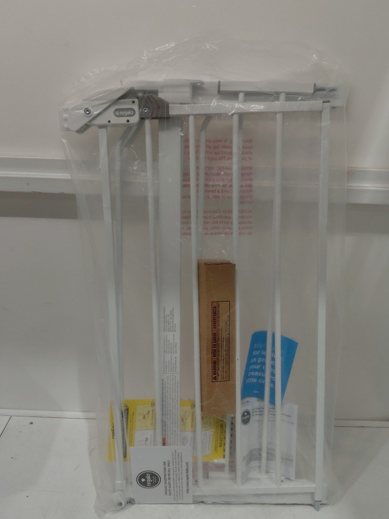 REGALO EASY-STEP METAL WALK-THROUGH SAFETY GATE - 30" x 29'' to 38.5'' - WHITE - (MODEL: 1160DS)