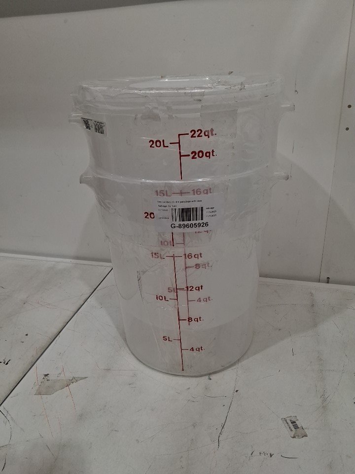 RESTAURANTWARE MET LUX 22QT FOOD CONTAINER, ROUND COMMERCIAL STORAGE BIN (CLEAR)