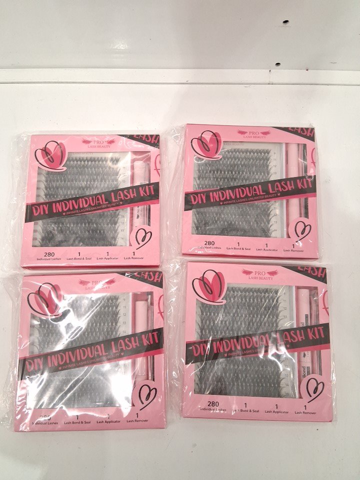 4 (280pc) pro lashbeauty eyelash extension kit with lash bond, waterproof seal, brush spoolie & tweezers - 30D + 40D curl - 9mm - 16mm