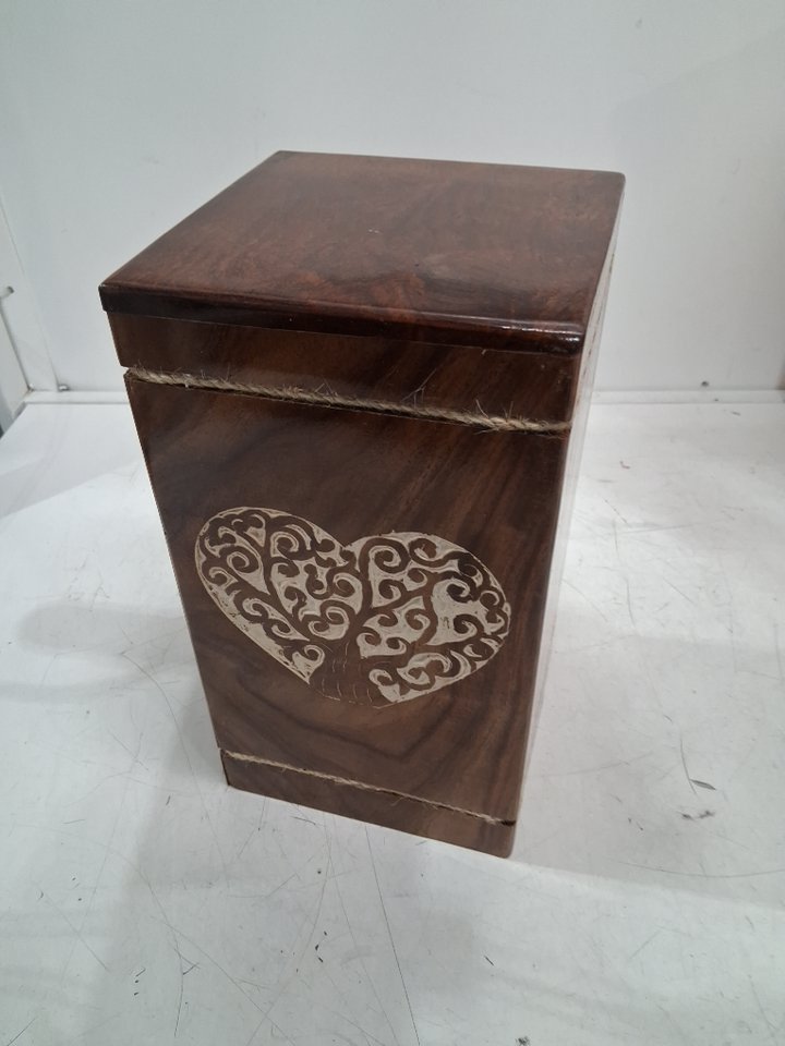 Hind Handicrafts Heart Shaped Tree of Life Wooden Rosewood Urn - 6" x 6" x 11" - Rosewood
