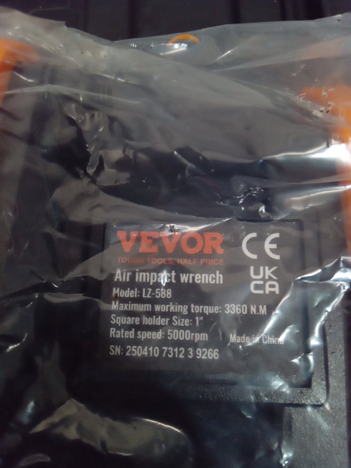 vevor heavy duty pneumatic air impact gun wrench with carrying case - 1" - 8" extended anvil - up to 3360nm - black/orange (model: lz-588)