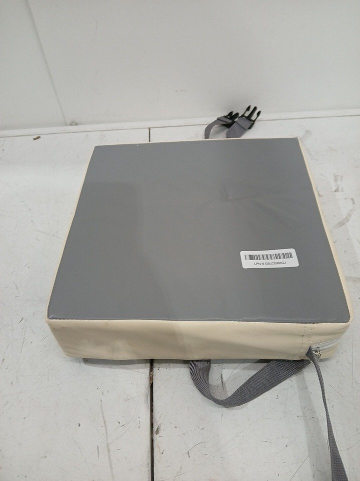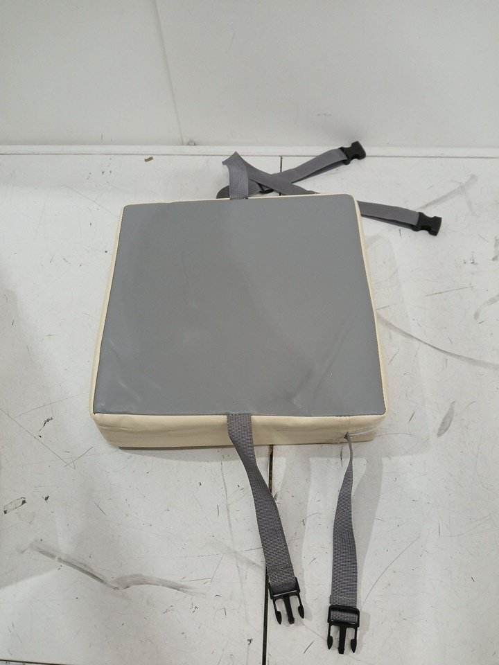 unbranded BOOSTER SEAT CHAIR CUSHION WITH STRAPS - 12" x 12" x 3" - GREY/WHITE