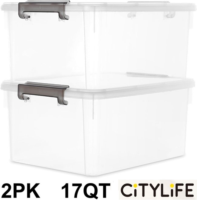 2pk citylife plastic storage Bins with Latching Lids - 17qt - clear
