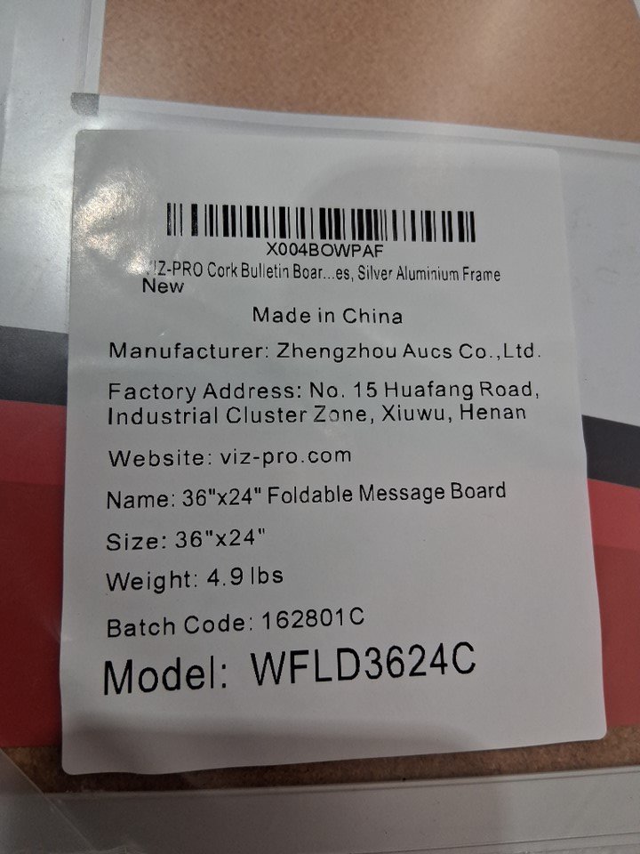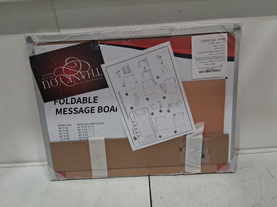 viz-pro WALL MOUNTED FOLDABLE Cork BOARD Notice message Board - 24" x 36" - silver frame (MODEL: WFLD3624C)