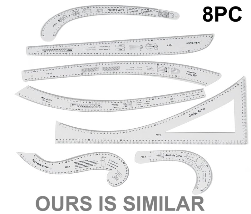 8pc special rulers for clothing design - WHITE