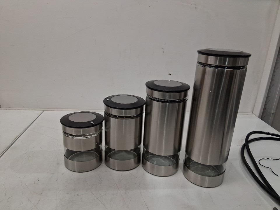 4pc Stainless steel canister set - 20oz/34oz/43oz/63oz - grey (model: GL-984)