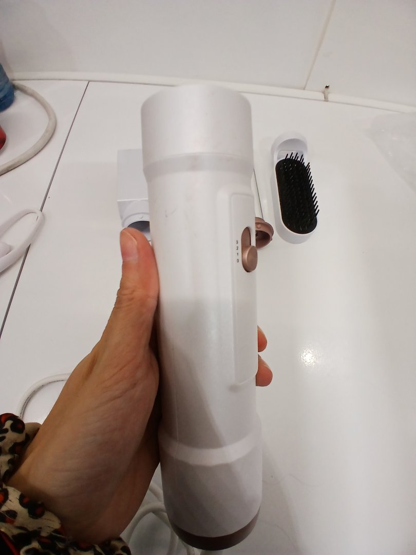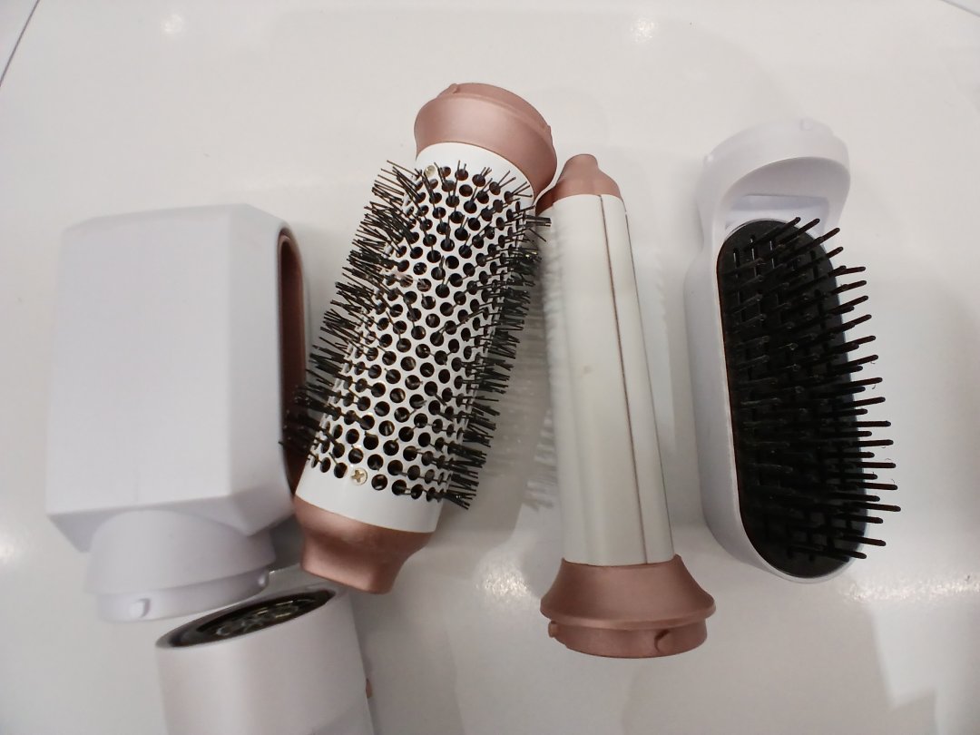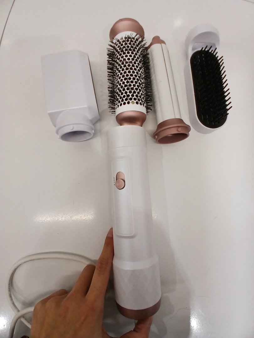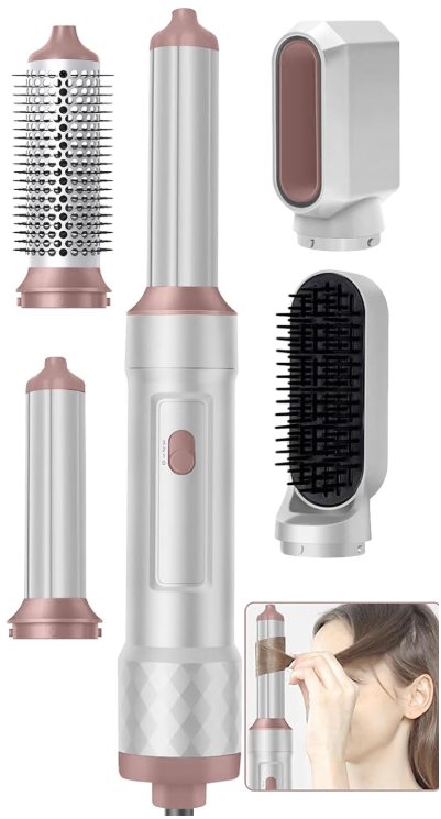 5 in 1 Blow Dryer Brush - Auto Wrap Styler, Volumizer, Curling Iron, Round Brush, Hot Air Brush - white/pink