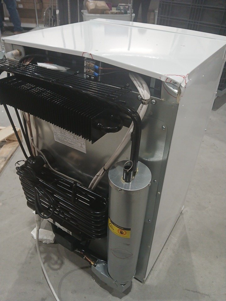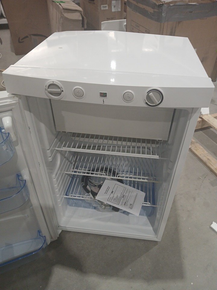 Please note we are unable to properly test this unit, as per the manual it claims it will take several hours to cool down. There is a series of dents and dings on various parts of the fridge, see photos attached.