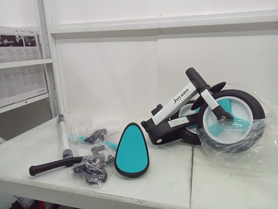 JOYANO 5-IN-1 KIDS TRICYCLE/BALANCE BIKE/PUSH BIKE WITH PUSHBAR - WHITE/BLACK/BLUE (MODEL: SVT-012)