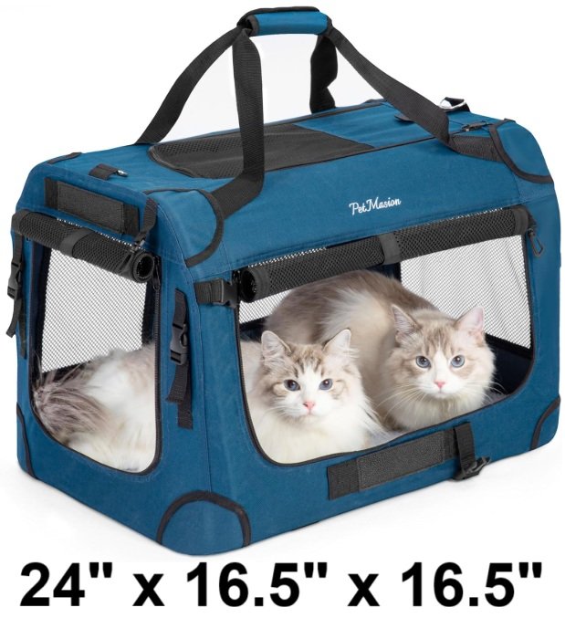petmasion Collapsible Soft Sided xl cat carrier - 24"x16.5"x16.5" - blue (model: PCML-0822)