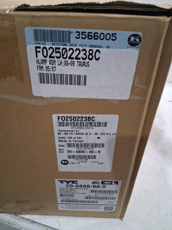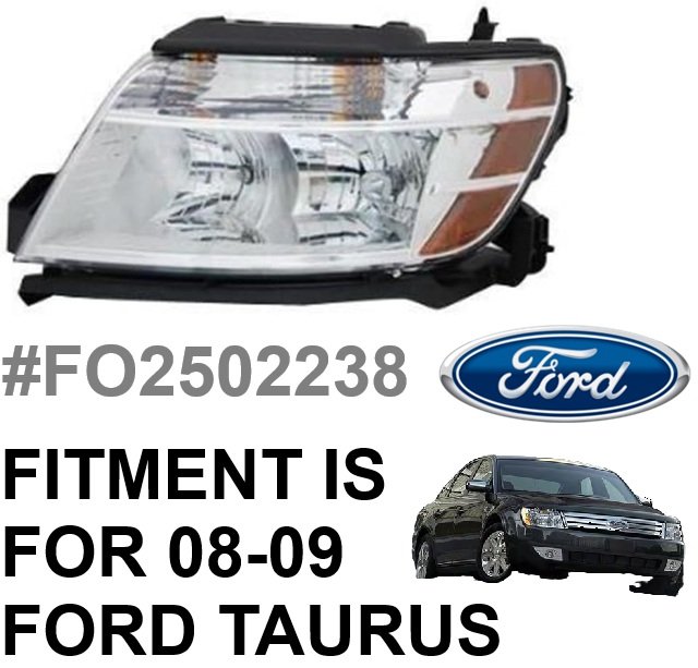 Incandescent Left Driver side Headlight Assembly - Fitment is 08-09 Ford taurus (model: FO2502238)