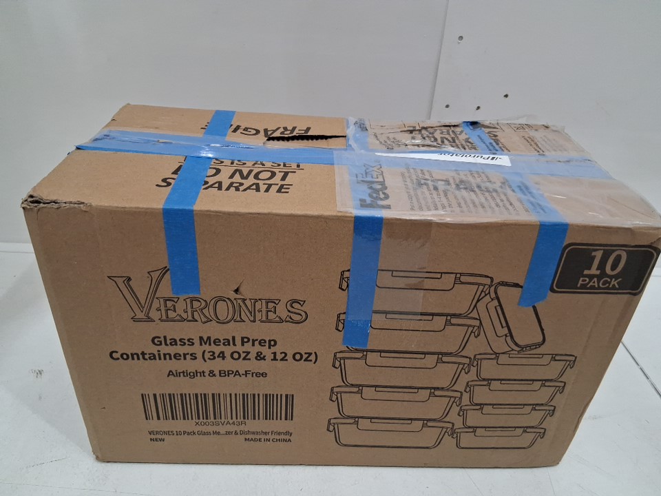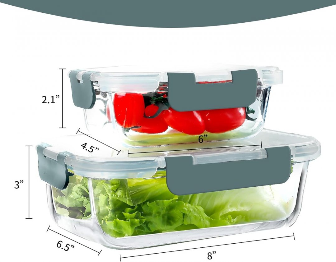 20PC VERONES Glass Airtight Meal Prep Containers - 34OZ / 12OZ - Clear/Grey