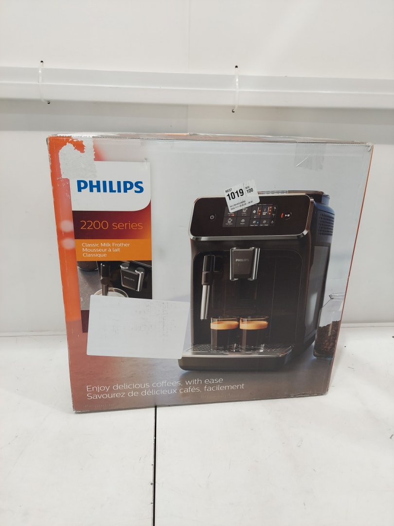 PHILIPS 2200 SERIES FULLY AUTOMATIC ESPRESSO/COFFEE MACHINE WITH BUILT-IN MILK FROTHER & GRINDER - BLACK (MODEL: EP2220/14)